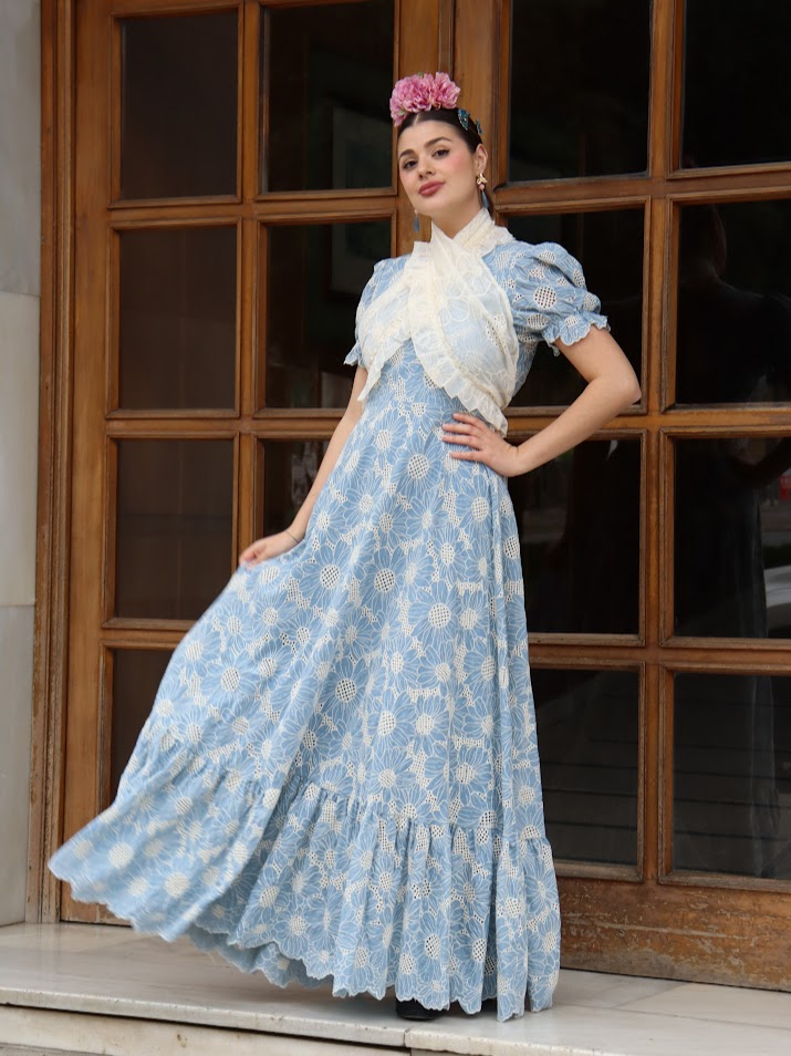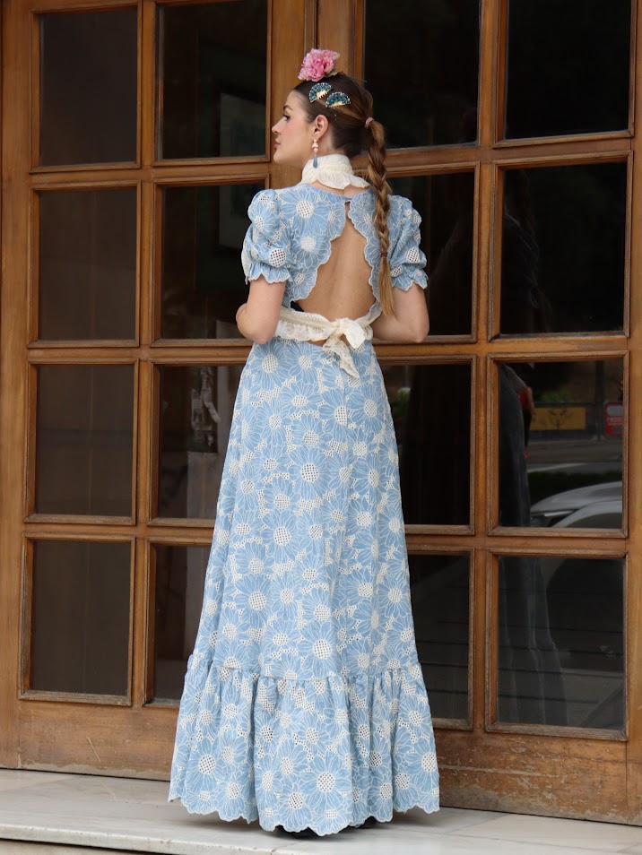 Bata perforada flor celeste