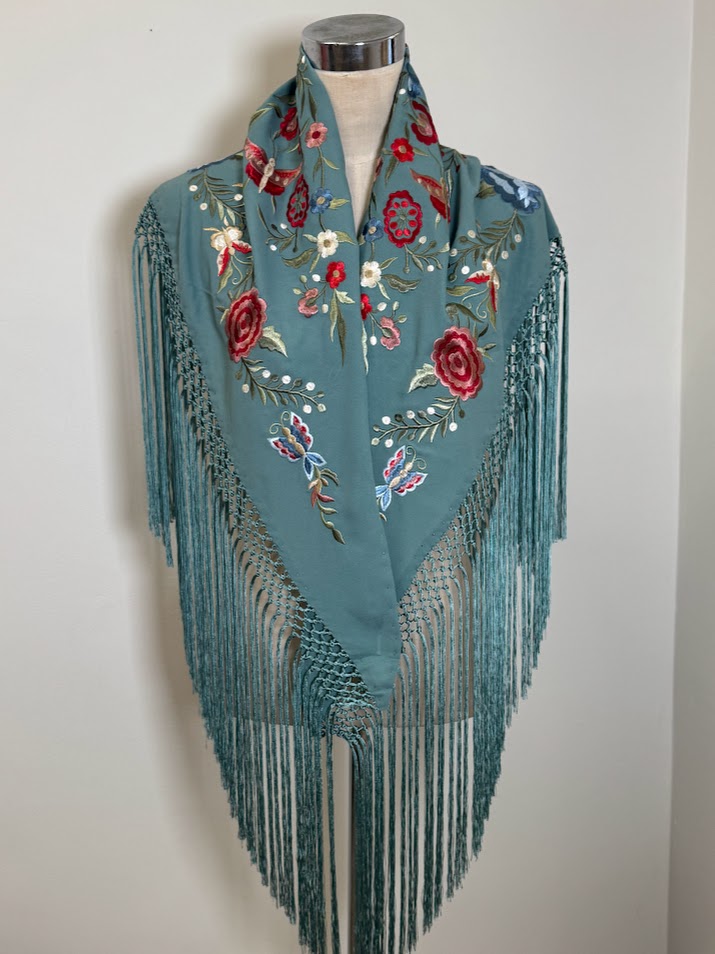 Mantón bordado Mayo verde agua