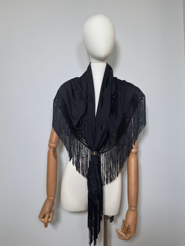 Mantón poliester negro bordado negro